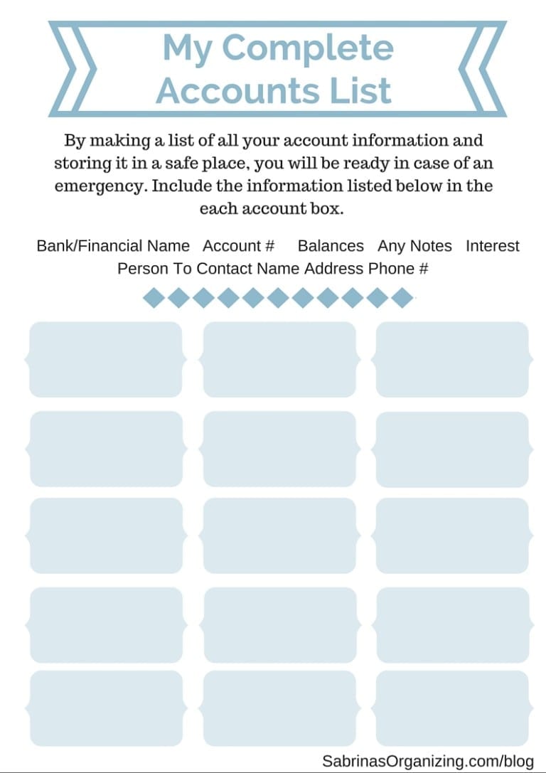 There have been numerous dangerous weather-related emergencies over the years. Why not be prepared in case you need to leave your home quickly? This week, we'll discuss how to create a comprehensive bank account list for your preparedness binder.