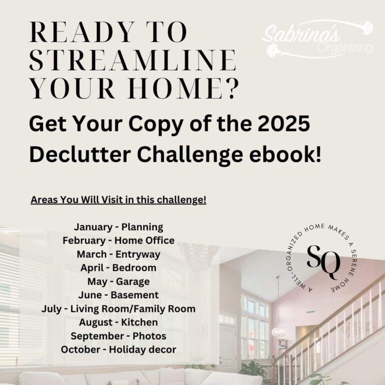 These are all the collections of Sabrina's Organizing FREE ebooks that you can get if you sign up for our newsletter. They are evergreen content to support you and your well-organized life and home.